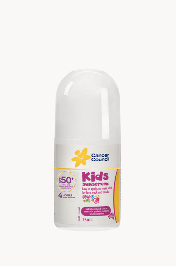 Cancer Council Kids Roll On Sunscreen 50+ 75ml with;